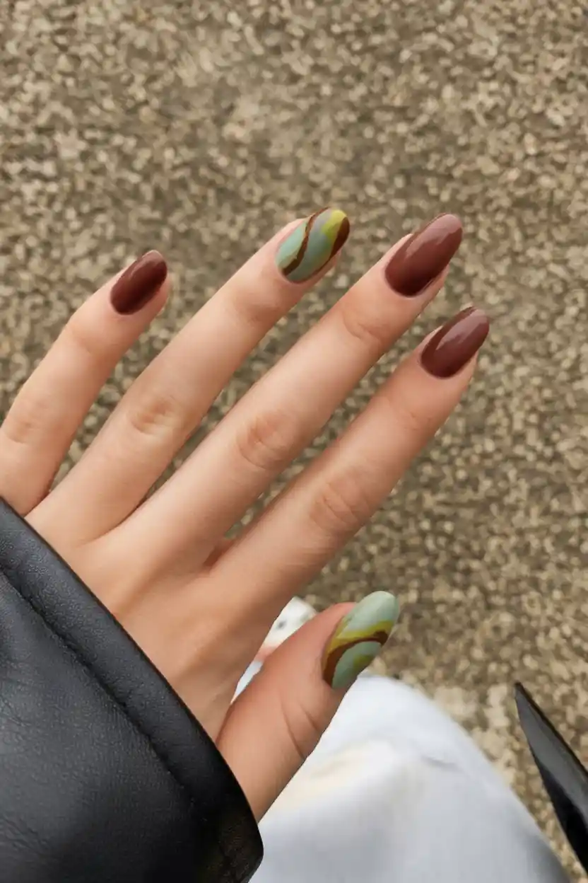 This design is awesome when you are obsessed with the idea of inspo almond brown nails and you prefer something a little bit more personality-filled. It compliments with short or long almond-shaped people and best suited in November as the wardrobe tends to be more cozy and audacious. Try it with gold jewelry for extra impact.