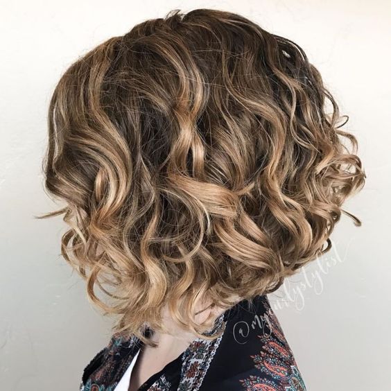 This side profile showcases a gorgeous curly bob with soft golden highlights. The layers add dimension and movement, while the curls give it a lively and playful touch. Ideal for those looking for a fresh and youthful hairstyle with added depth.