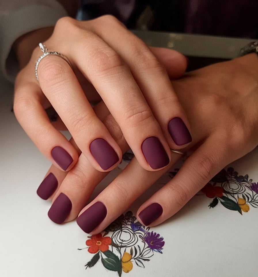There’s something incredibly calming about a rich matte mulberry nail. It’s cozy without being boring — like curling up with a good book in a chunky knit sweater. This look says “I’ve got style, but I’m not trying too hard,” and sometimes, that’s the most powerful vibe of all.