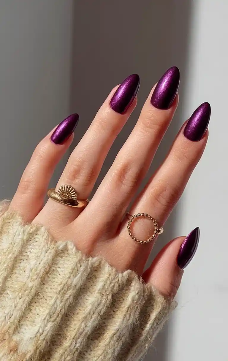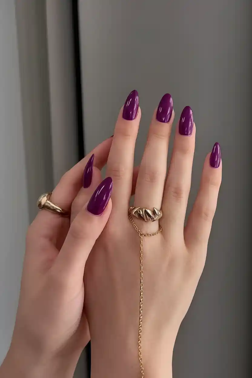 Ideal for medium-length ovals or square nails, this color suits every skin tone. If you’re new to purples or want a break from nudes, this is a safe but stylish entry point. Pair it with earth-toned outfits for a stunning seasonal contrast.