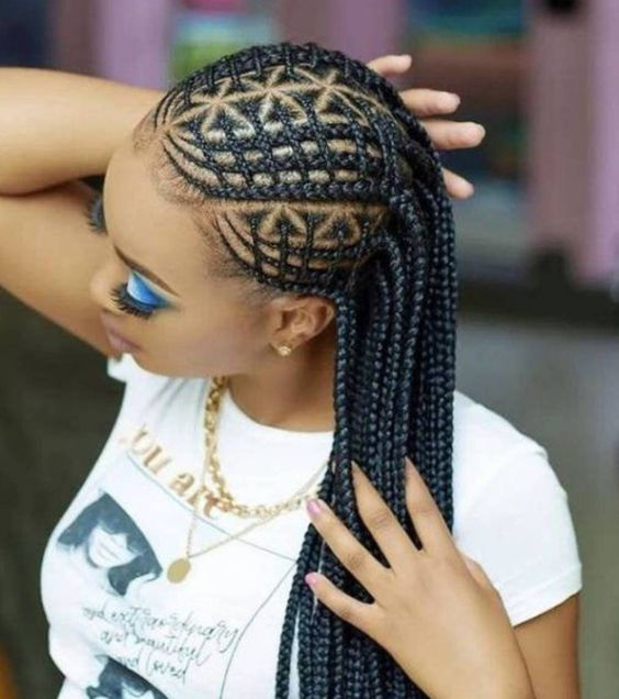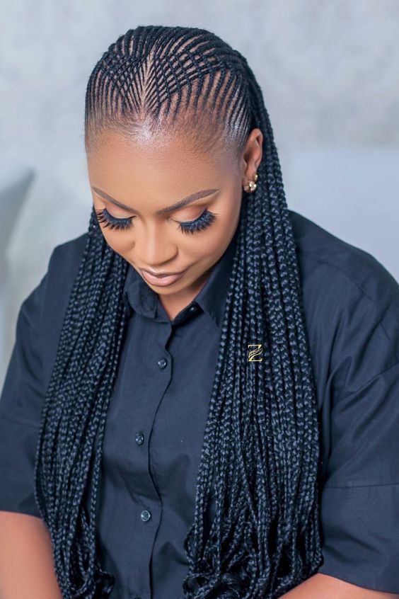 A side-parted cornrows braids hairstyle exudes sophistication and charm. This style allows you to frame your face beautifully and can be customized to suit your preferences. Whether you prefer a deep side part or a subtle one, it’s a timeless choice that complements various face shapes.