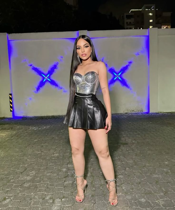 For a summer night out, this two-piece sporty set is a statement look with a bold night baddie midsize aesthetic. The mesh crop top adds an element of risqué fun while keeping things breathable for those long dance nights. The ruched mini skirt perfectly hugs the body, giving a flirty and playful vibe. The standout piece here is the knee-high leather boots, which add structure and edge to the outfit. Paired with a tiny handbag and dainty gold jewelry, this look is ideal for rooftop parties and stylish Miami club scenes.