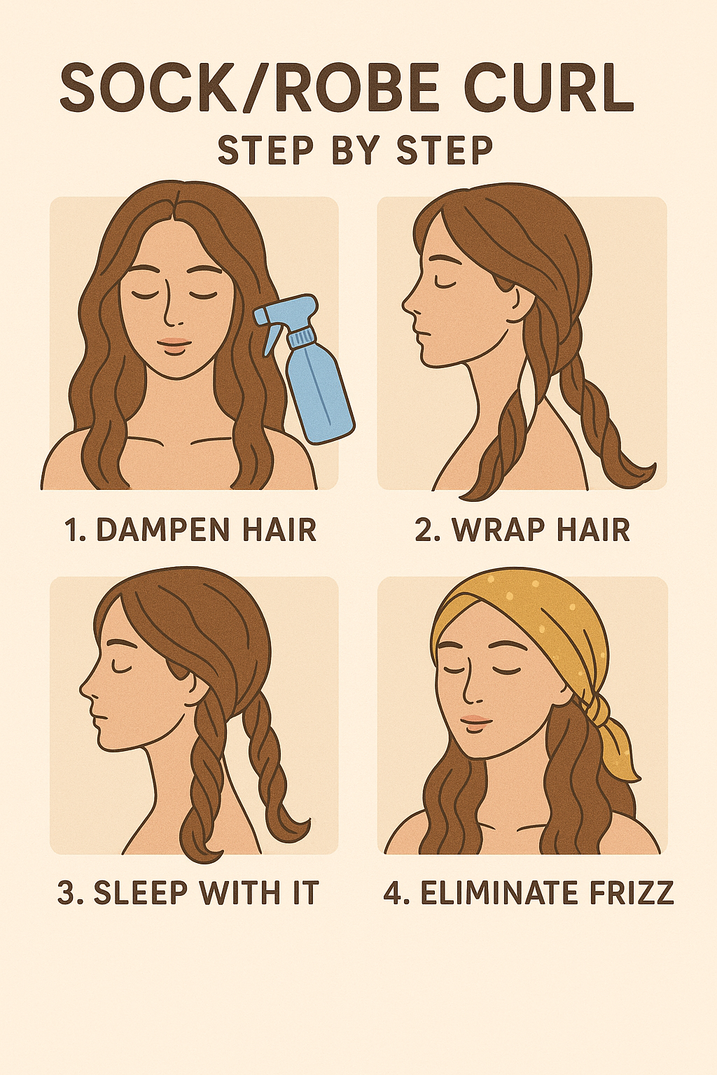 3. Heatless Overnight Curls with Socks or Robe Belt