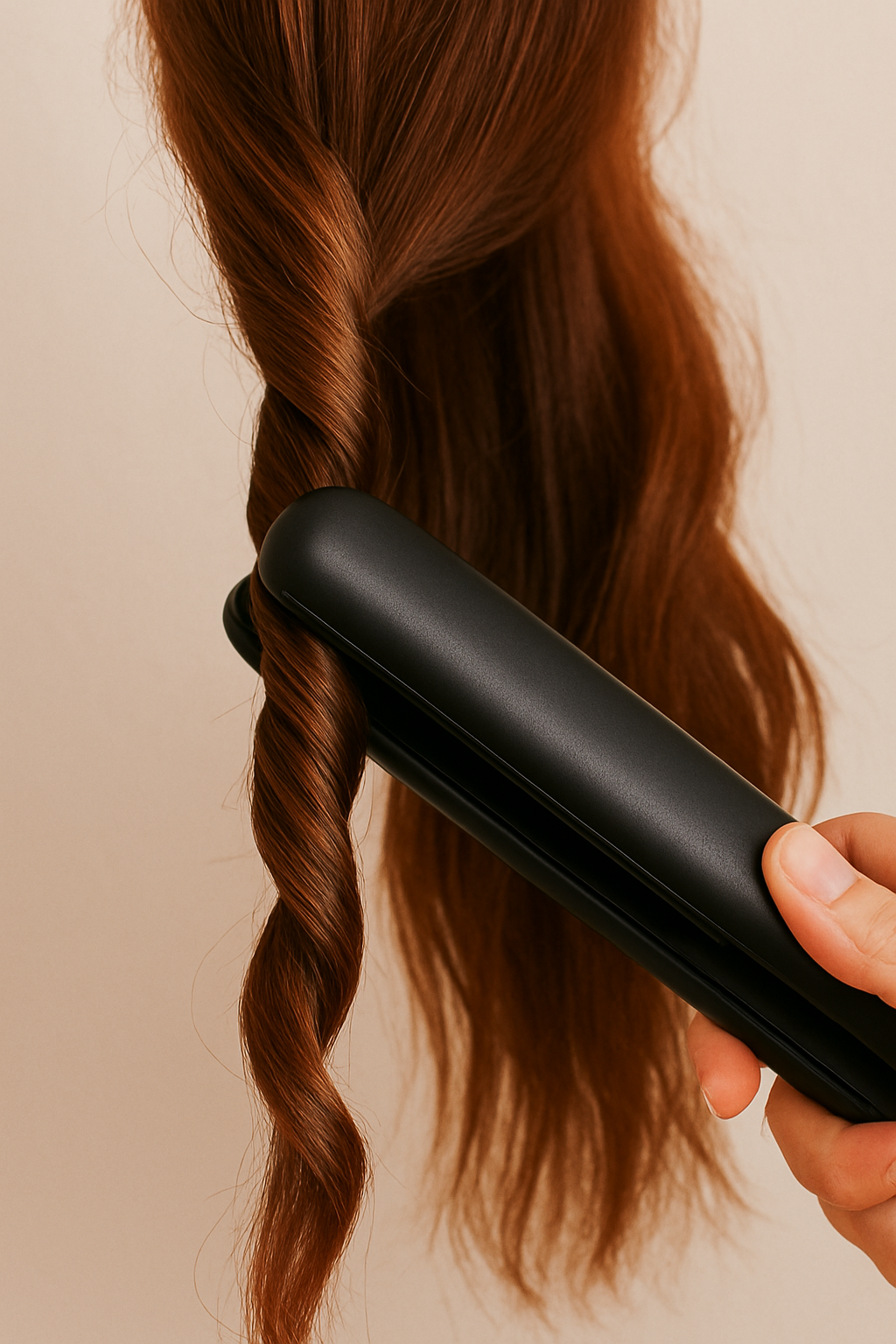 Flat irons don’t just straighten — they use heated plates to reshape your hair’s hydrogen bonds. When you apply controlled heat and shape your hair with a twist, slide, or press, you can form lasting curls, waves, and bends that rival any curling wand.