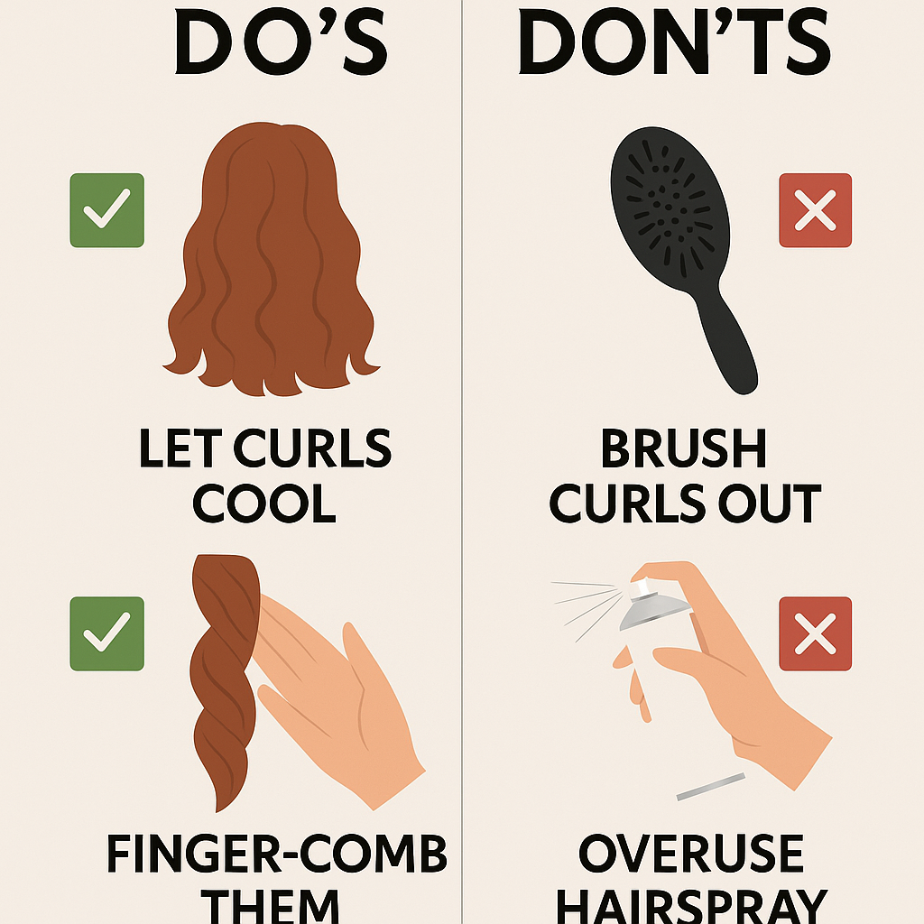 Getting the curl is only half the battle — keeping it is the other. Let each curl cool completely before touching it. Use a flexible hold hairspray or a texture mist. And resist brushing them out! Finger-comb instead for soft, defined waves.