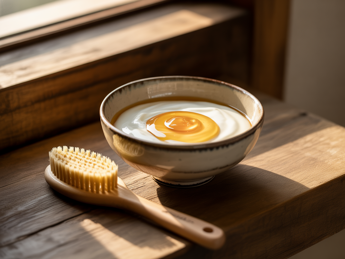 This is my go-to when my skin feels tight or flaky. Honey is a natural humectant, which means it pulls moisture into the skin. Yogurt is packed with probiotics and lactic acid — gently exfoliating and softening the skin at the same time.