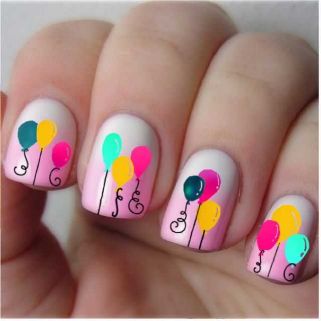 Match your outfit with the colorful balloons for a cohesive and playful look. These short nails ensure comfort while celebrating in style.