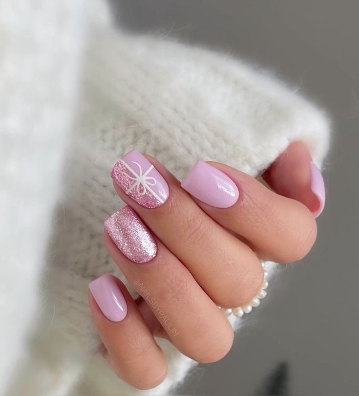 For those who prefer understated elegance, this pretty nail art features pink and silver glitter with a delicate bow design. Ideal for a 22nd or 24th birthday, this look blends simplicity with a dash of sparkle, making it perfect for more formal gatherings.