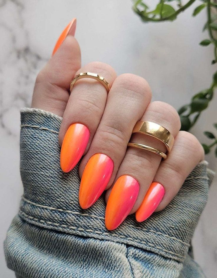 This vibrant design features a gradient of pink and orange, creating a stunning ombre effect. The bright colors blend seamlessly, making it a perfect look for those who love bright colors for fall nails. It’s a fun and eye-catching design that’s sure to stand out.