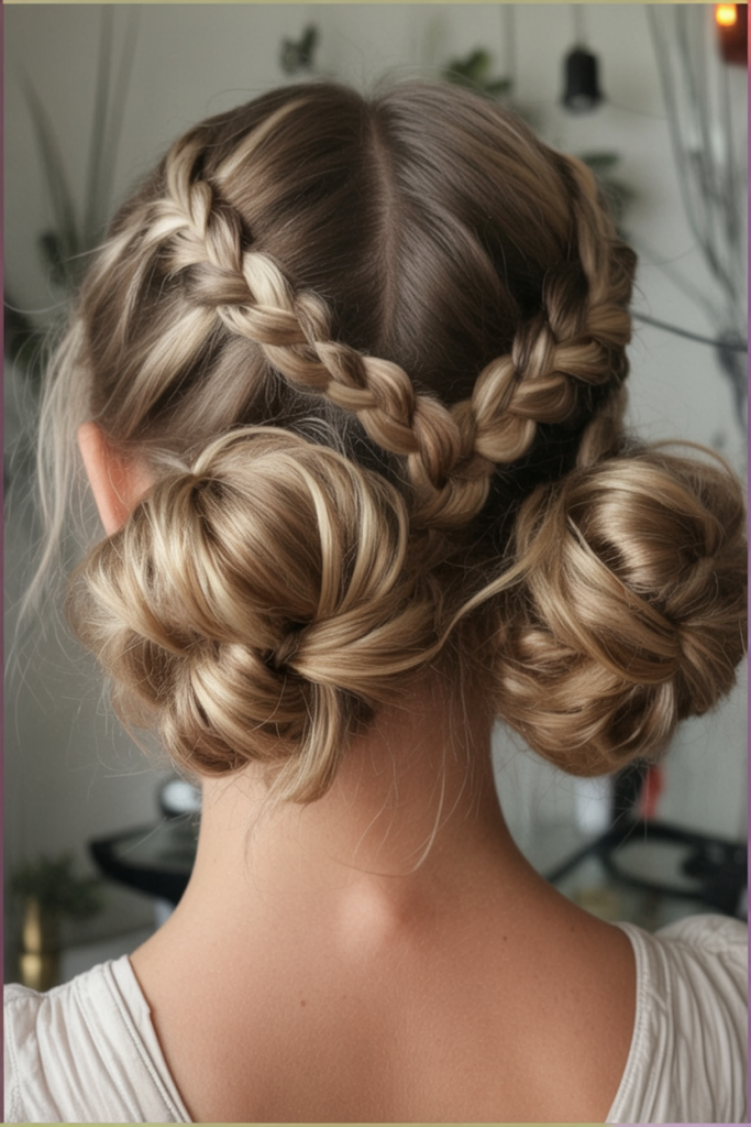 It is an ideal choice when long hair or medium length hair is required particularly on a casual day, concerts or festivals. Twist the face-crowning elements to add additional appeal, and it does not matter each bun to be different; some imperfection makes it even more appealing.