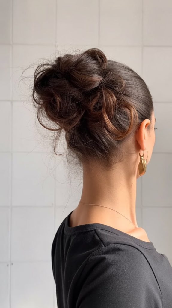Strict, elegant, and simply majestic, this high bun exudes a feeling of a controlled and self-confident woman. With its smooth edges and balanced height, it is best suitable in the corporate world, be it a boardroom or a gala. The clean lines come to emphasize on the facial features and provide a lifted, graceful form.
