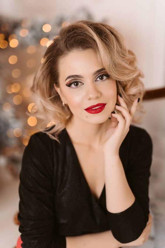 Channel your inner Old Hollywood glam with this vintage-inspired hairstyle. Soft, voluminous curls frame the face, giving a touch of retro elegance. Perfect for women with short hair or shoulder length locks, these curls create a polished look suitable for any formal or semi-formal Christmas party. The waves can be achieved with a curling iron or hot rollers, and a touch of setting spray will help maintain the structure all evening.