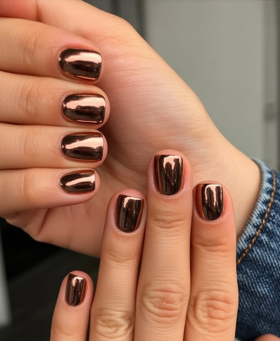 Low-maintenance angle: short or squoval nails hold chrome beautifully and chip less. Choose a smooth rubber base, then a blush metallic powder sealed with a no-wipe top. If your lifestyle is busy, this simple approach outlasts regular polish and fits 2026 trends for streamlined ideas that still bring serious shine.