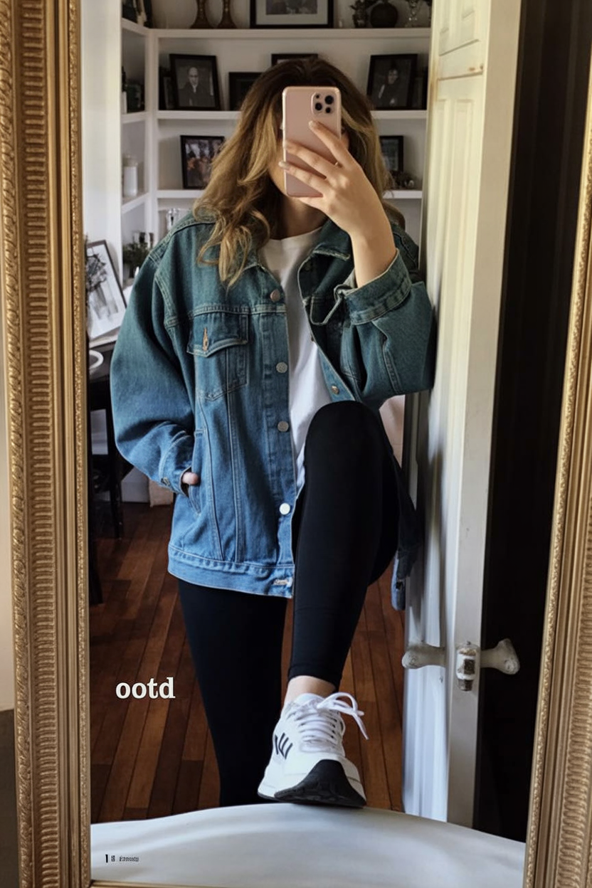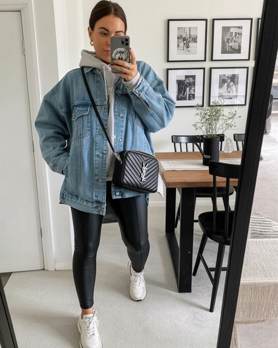 16. Oversized Denim Jacket + Leggings for the Ultimate Comfy Uniform