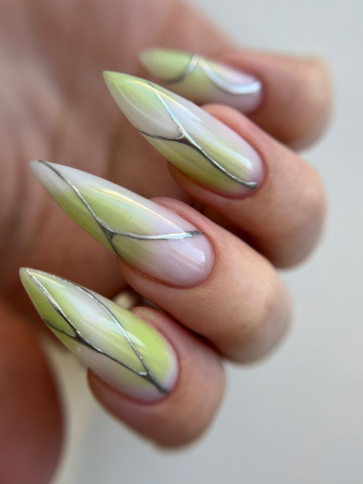 Simplicity meets elegance in this art design for 2025, featuring thin green lines over a nude base. The minimalist approach makes it suitable for both casual and formal settings, especially for autumn 2025.