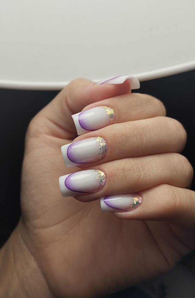 The classic French tip gets a modern twist with a summer 2025 purple gradient along the edges, accented with fine glitter at the base. This look is ideal for summer weddings or outdoor parties. The purple hue gives it a fresh and fun vibe, while the glitter adds a touch of glam, perfect for 2025 august events. Pair these nails with a flowy lavender dress or a white summer outfit for a cohesive, polished look. Art designs 2025 summer white perfectly encapsulates this style, making it a top pick this season.