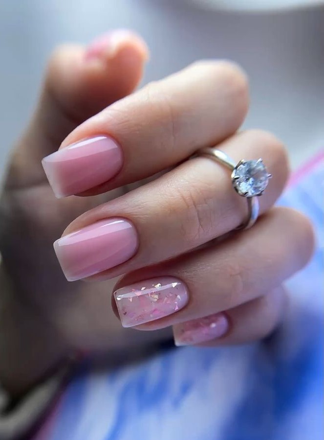 Understated elegance defines these cute pink nails with subtle metallic accents. The design is versatile, making it suitable for every season, from spring to autumn 2025. The square shape keeps it modern and practical.