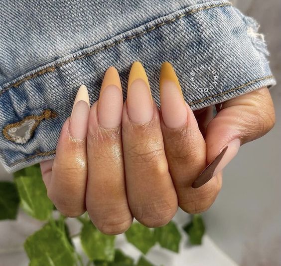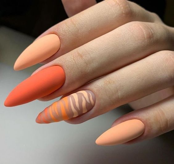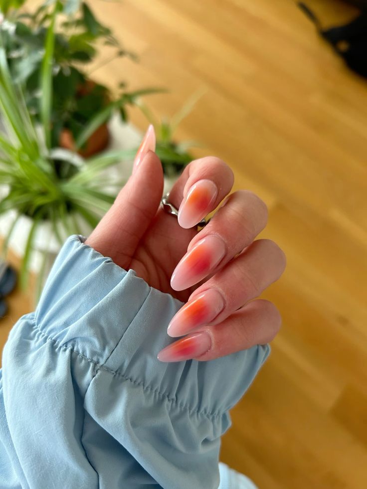 Inspired by the colors of a fading sunset, these nails blend shades of peach and soft orange, creating a dreamlike quality that’s both captivating and chic. The seamless gradient mimics the sky at dusk, making these nails a perfect choice for evening events or casual outings. Pair with a flowy dress to complete the ethereal look.