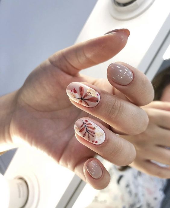 Perfect for the fall season, these nails are painted with a leaf design in a rich, autumnal palette of red and brown. The intricate detailing captures the natural beauty of fall foliage, making it a seasonal favorite that pairs wonderfully with cozy knitwear and classic leather boots.