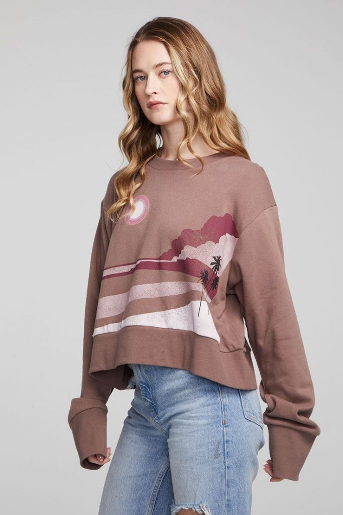 This playful sweatshirt in soft pastel tones brings a whimsical touch to your fall wardrobe. The light brown base adorned with pink and white graphics adds a unique twist to the casual sweatshirt, making it stand out in a sea of traditional fall colors. It’s perfect for a day spent at home or a casual outing, providing both comfort and style.