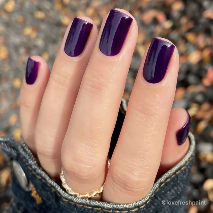 For those who prefer a more dramatic look, this deep plum manicure is a stunning choice. The glossy finish and short nail length make it both stylish and practical. This color works beautifully for evenings or formal events, adding a touch of sophistication.