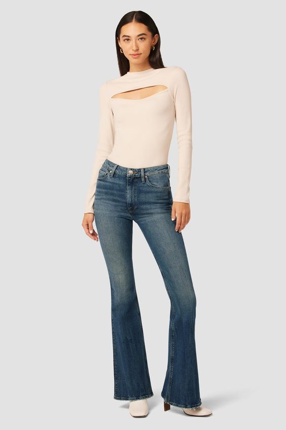A sophisticated outfit featuring high flared jeans and a tailored blazer speaks to those who prefer their denim to be as suitable for the office as it is for a night out. This style bridges ideas autumn with professional attire, offering a chic alternative to traditional workwear.