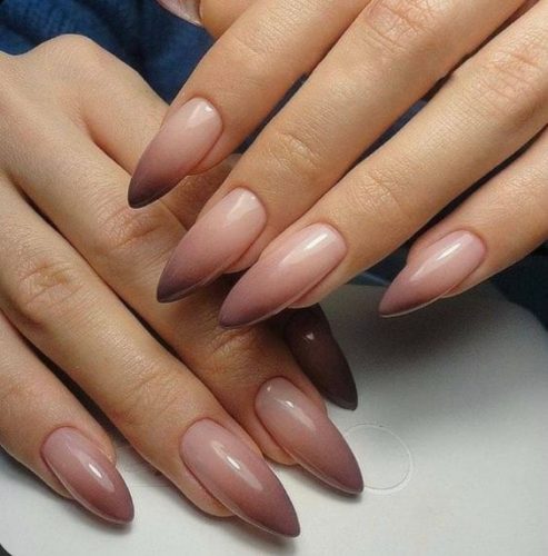 The gentle gradient from light to darker mauve epitomizes understated elegance. This nail style is ideal for those who prefer a subtle yet beautiful approach to their nail art. The smooth transition and glossy finish make these nails a versatile option for both professional and casual settings.