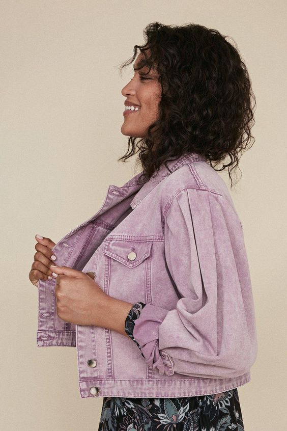 Embrace boldness with a striking color-blocked denim jacket in shades of pink and tan. The vibrant colors add a youthful and fun element to the fall wardrobe, perfect for those who love to stand out. The unique color scheme is balanced with classic denim, making it a standout piece for outfits 2024 that speak of individuality and style.