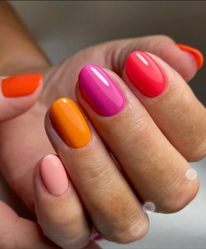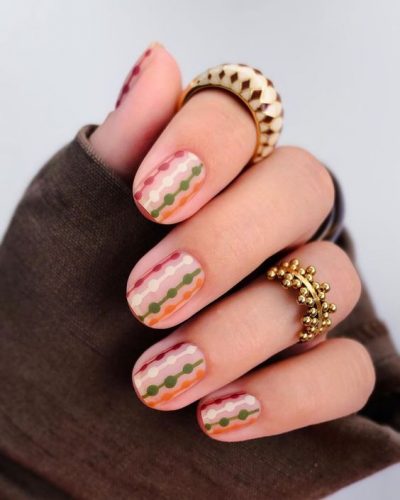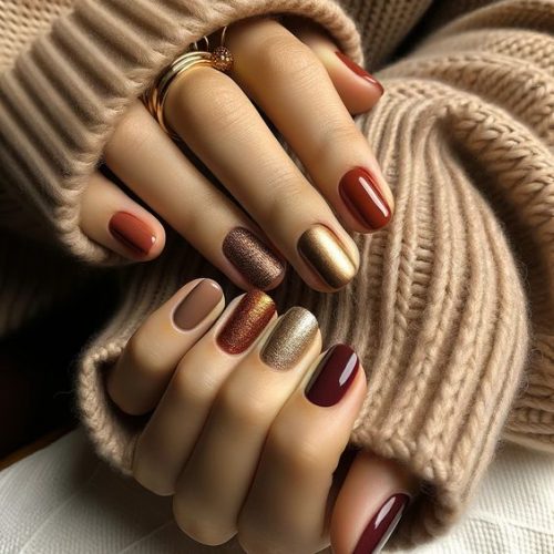 For lovers of minimalism, embrace simple fall nails multicolor with a touch of class. Subtle pink and taupe blend seamlessly on short nails, providing a chic look that works with any ensemble, from business casual to evening wear. It’s a testament to the beauty in simplicity, suitable for everyday elegance.