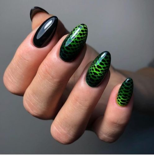 The mimic the serene feeling of a walk through the autumn woods with nails painted in shades of deep green and brown. This design balances boldness with earthiness in a way that’s both refreshing and comforting, great for those who draw inspiration from nature.