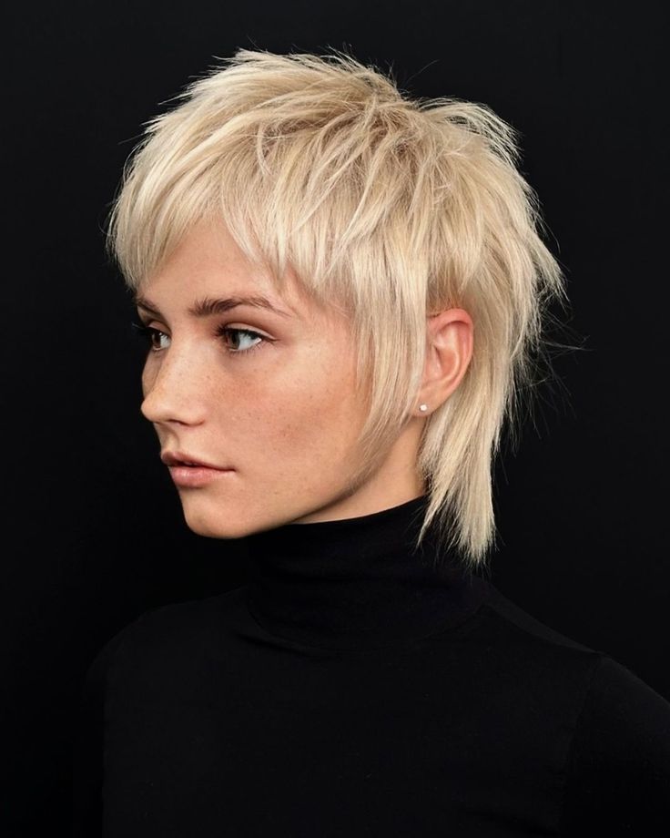 16. Edgy Platinum Blonde Choppy Mullet Hairstyle