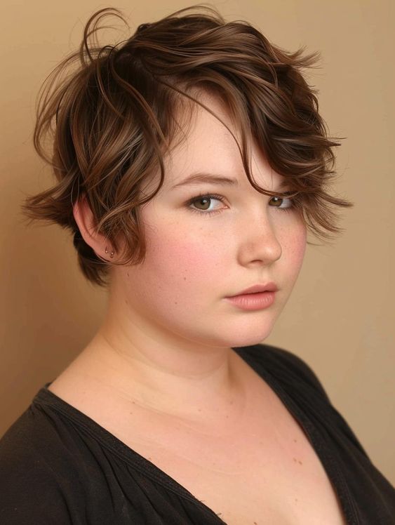 17. Playful Tousled Pixie Cut with Warm Brown Tones