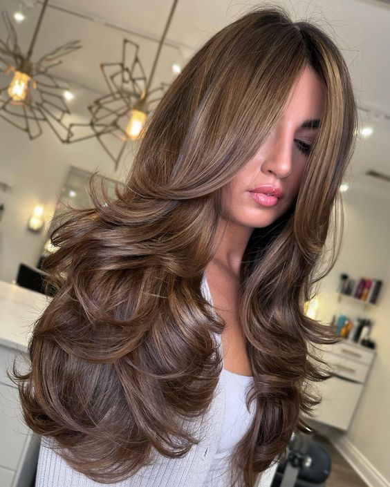 Long locks aren’t left behind in the choppy revolution. Here, the layers subtly remove weight, giving the hair a bouncy, voluminous feel, ideal for those seeking a romantic and feminine aura.