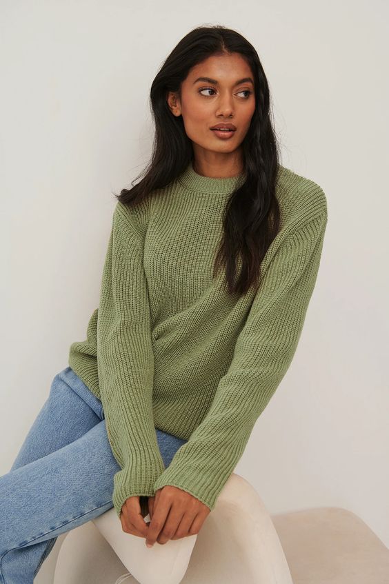 Sage green is a trending color for fall 2024, and this relaxed sweater captures its beauty perfectly. The soft knit and loose fit create a comfortable yet stylish look, ideal for casual outings or a cozy night in. Pair it with light-wash jeans and ankle boots for a complete fall outfit. This ensemble is perfect for running errands or catching up with friends over coffee, offering a blend of comfort and style.