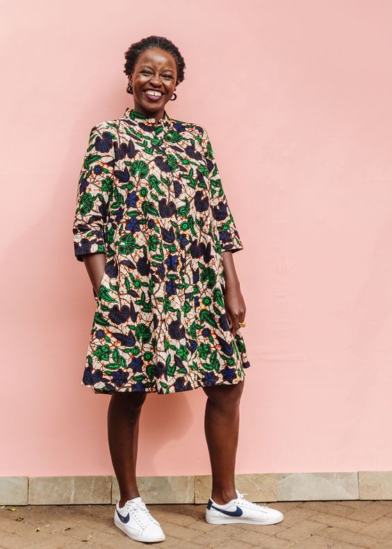 This dress brings a playful element to fall fashion. The vibrant, patterned dress is both fun and professional. The three-quarter sleeves provide coverage while still being comfortable. Paired with white sneakers, this outfit is perfect for a day of interactive activities with students. The dress’s pattern and colors make it a standout piece in any fall wardrobe.