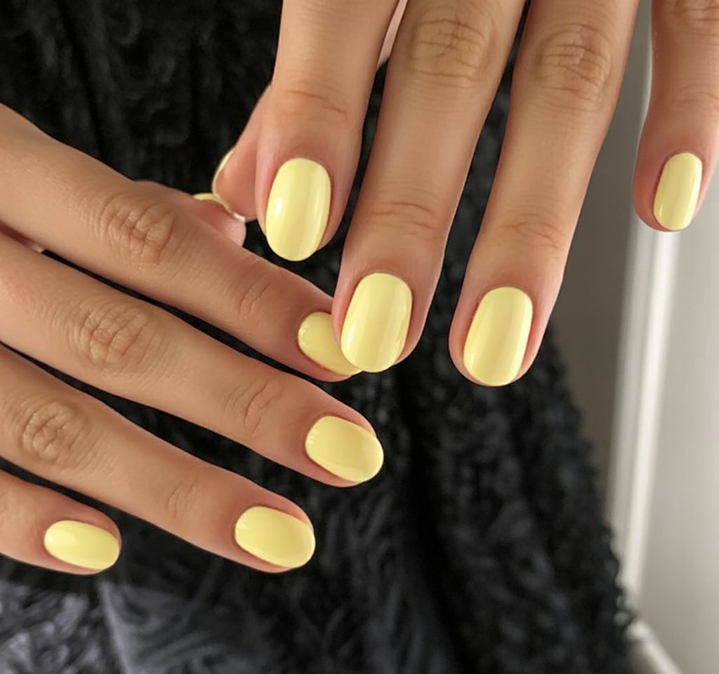 Sunny, creamy yellow brings instant optimism—like stepping into fresh daylight. The color is soft enough to wear with neutrals yet bright enough to feel summer-forward. In short, on rounded nails it reads clean and modern, making hands look youthful and energized. Pair it with striped tees, straw bags, and weekend walks; this is pure mood-lifting Polish that photographs beautifully.