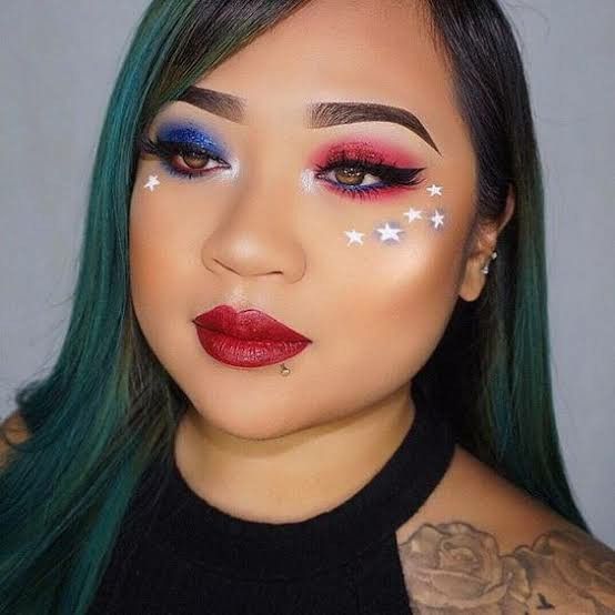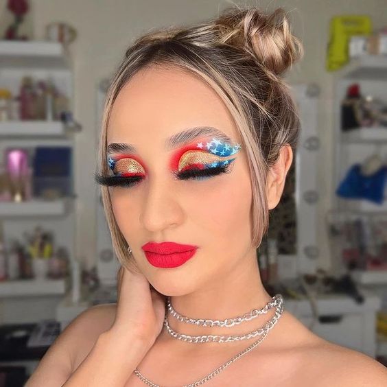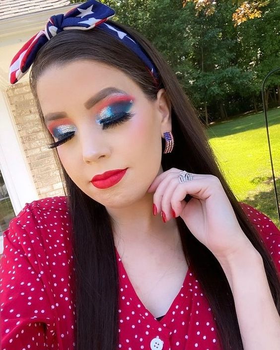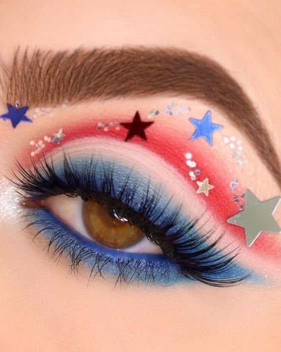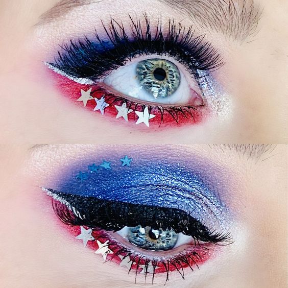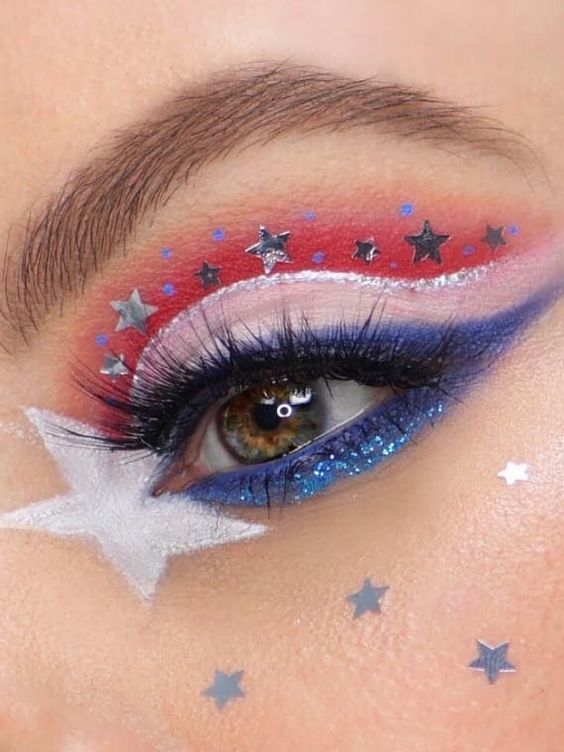 Glitter and Stripes: 21 Eyeshadow Makeup Ideas July 4th 2024