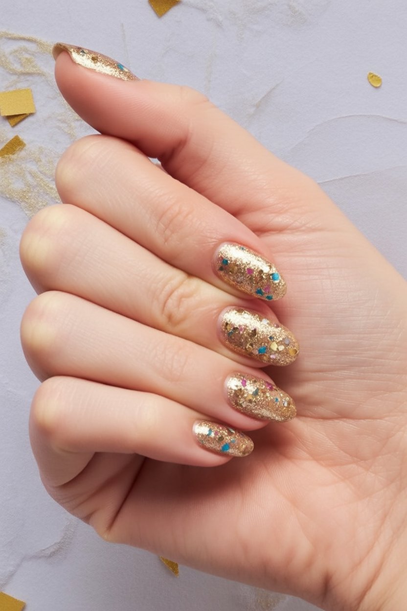 Full-coverage glitter with tiny pops of color gives a playful, celebratory vibe—like a handful of confetti at golden hour. It’s fun, happy, and surprisingly chic when paired with simple outfits. Comparison with other cuts: unlike plain glitter, the small bursts of color add dimension and nod to colors and color styling trends. They look gorgeous next to wine and lips, a solid black dress, or white tees. Choose gel for staying power or a quick-dry polish for weekend parties.