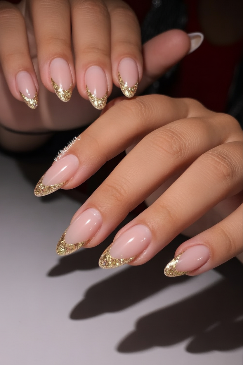 The light catches each gesture with the delicate curve along the fingers. Emotional payoff: these are instant mood-lifters. Wear them to brunch, date night, or even a big meeting when you want confidence with a wink. If you coordinate toenails, choose colors that go with the glitter—champagne or a subtle beige—to keep the look harmonious.
