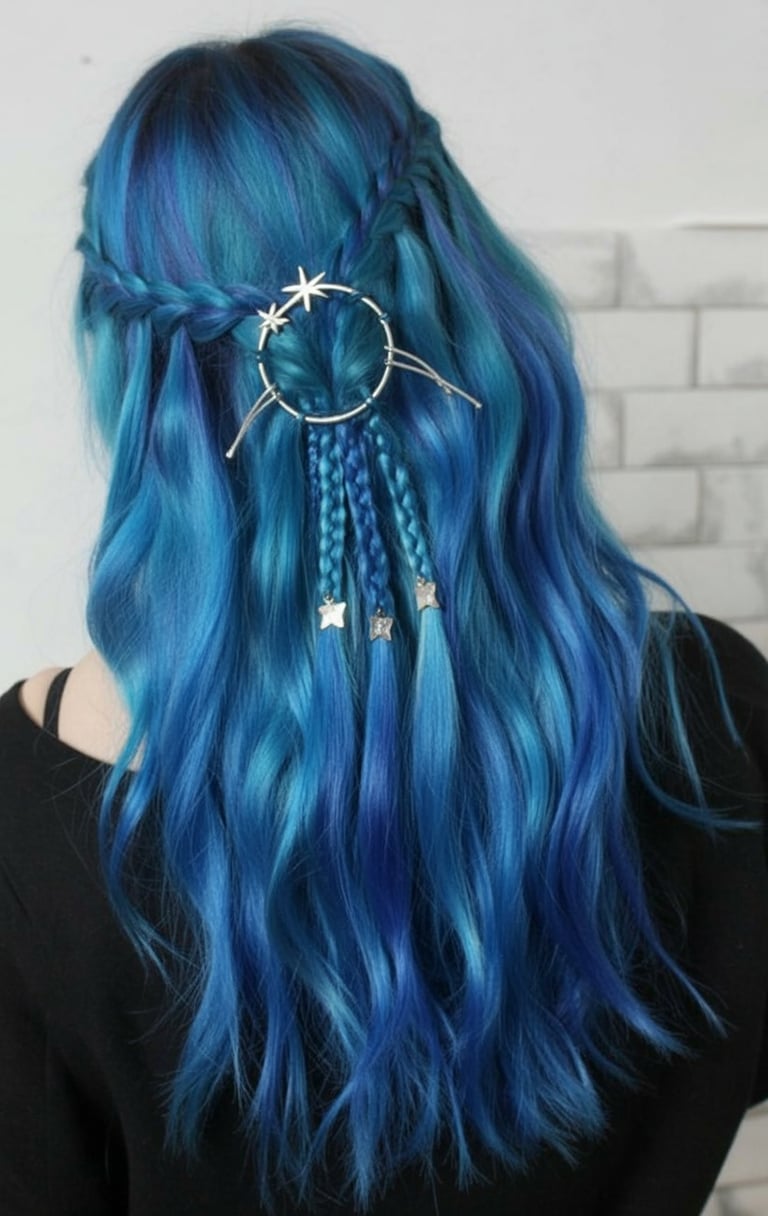 This Blue is pure fantasy—in the best way. It feels bold, bright, and unapologetic, like you’re walking around with your own personal mood filter. And paired with a soft braided halo detail, it looks romantic instead of harsh, giving the color a dreamy, wearable finish. It’s the kind of Inspo that makes you want to book a color appointment and not overthink it.