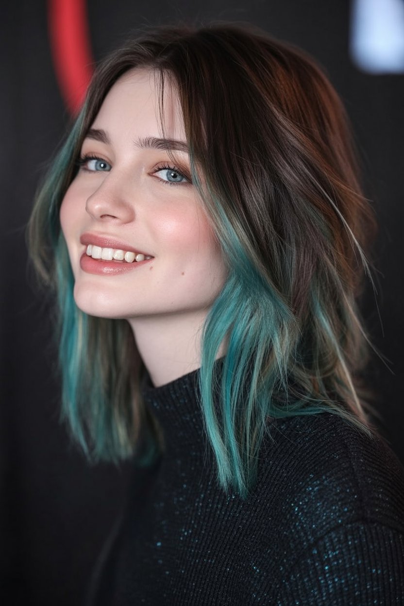 The emotional payoff is real: you get that “new hair energy” without having to change everything. Keep the top deeper and let the color live through the underneath and sides so it peeks out in motion. A gentle wave brings out dimension, and a color-safe shampoo plus cool-water rinses will keep the teal tone from going dull too quickly.