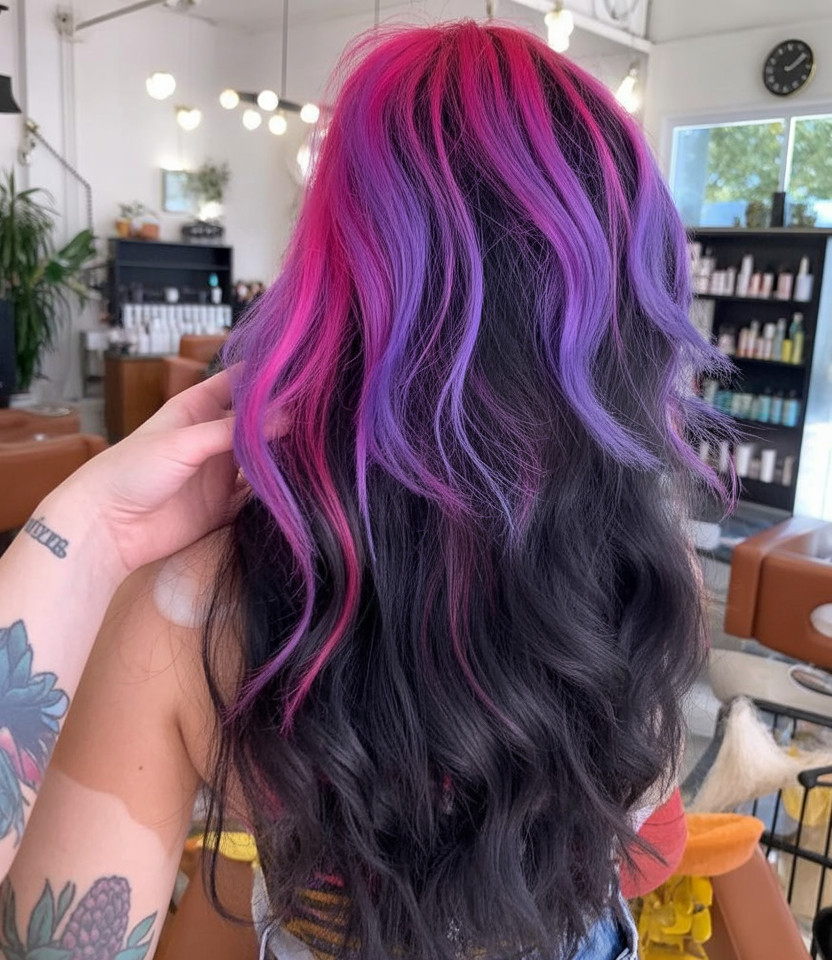 1. Black Waves with Pink + Purple Peekaboo Highlights