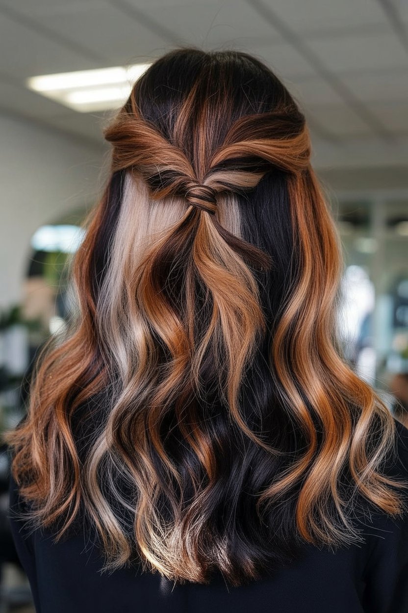 This is one of those trendy hair color looks that instantly makes your hair seem healthier and more expensive. The dark base keeps it rich, while the honey-brown ribbons add warmth and softness in the prettiest way. It’s not loud, it’s not try-hard—it’s just that “wow, she looks fresh” effect that works on literally any day of the week.