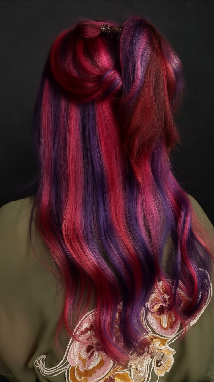 11. Red and Purple Ribbon Melt with Half-Up Volume