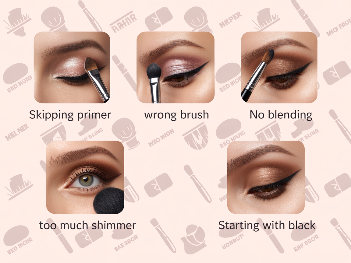 - Overdoing shimmer: too much shine makes the eye look puffy.