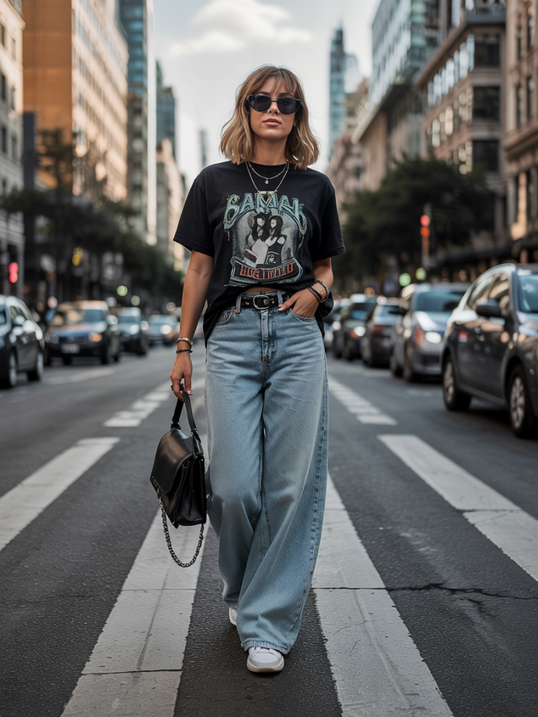 15. Graphic Tee and Wide-Leg Street-Style Denim