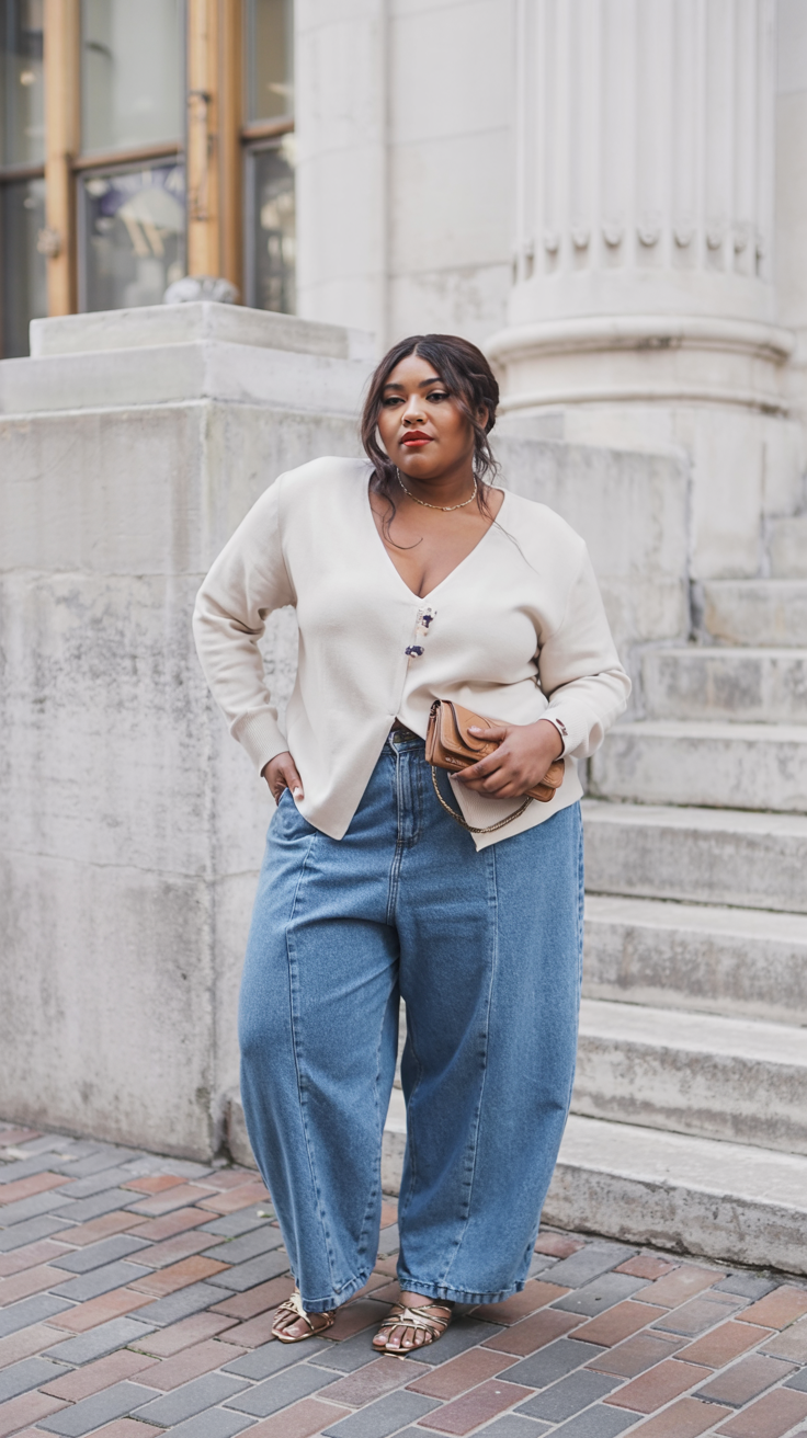 5. Soft Cardigan and Baggy Denim for Curvy Confidence