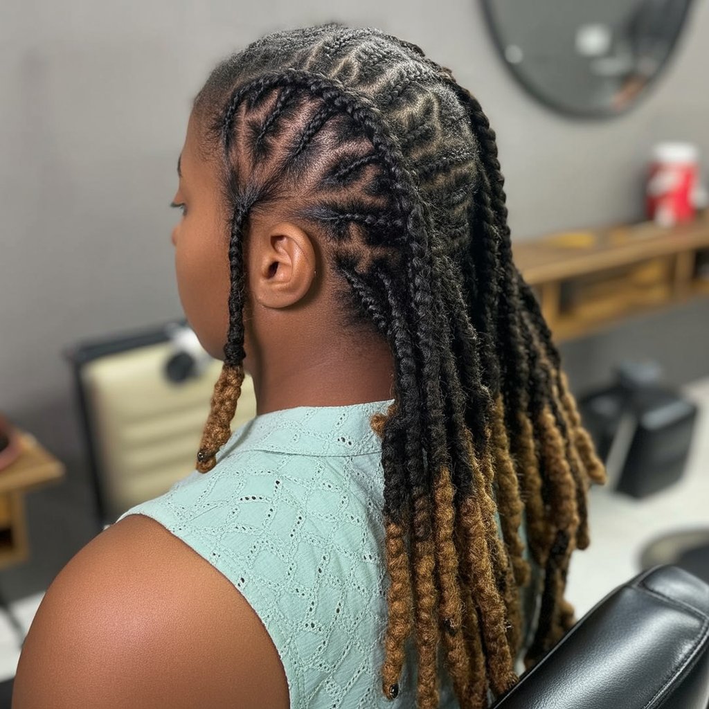 Trend-wise, 2026 is leaning into structured protective styles that show off clean parting and intentional shapes—and this is right on target. You get the sleekness of braids with the texture of dreadlocks in one look. Ask for a smooth braid base and a secure tuck at the back so it lasts. If you like extras, a few subtle beads can nod to loc jewelry ideas without taking over. Keep edges soft with a light gel, not heavy buildup.