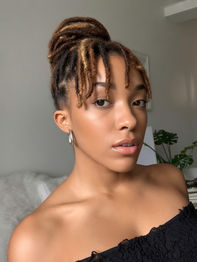 Who it’s for: anyone who loves height and shape, especially if you have medium to thick natural hair or you want to fake fullness with faux pieces. It’s also a smart choice if your schedule is packed and you need your style to stay put. Ask for a secure base and a soft, rounded finish so it doesn’t feel too tight. Add loc jewelry ideas (a couple cuffs or beads is plenty) if you want a little sparkle without going overboard.