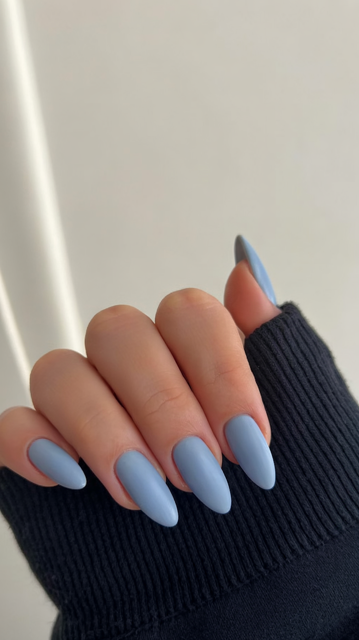 These sky blue almond nails are just about as refreshing as a bright and sunny day after a rainy storm—light, uplifting, and just downright refreshing, and this matte finish on these nails gives this sky blue color just an air of being some kind of cloud-colored cloud of color, and this almond-shaped tip on these nails gives your hands just a fabulous kind of feminine, delicate look that just about any kind of black sweater would look stylish with afterward. If you’re always drawn to blue but think it may be a bit too statement-making, this softer hue is your cue to go for it. You’ll find that this almond-shaped design is perfect for most hand types, whether you’re into a subtle point or just want your nails to have some character. Think of this as your mini push towards trying something new—add this design idea to your list for the next time you get thirsty for something uplifting, fresh, and confidently chic.